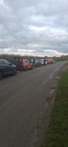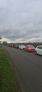 Ranks of cars, all in a row in a country lane. Whoever would have thought it?